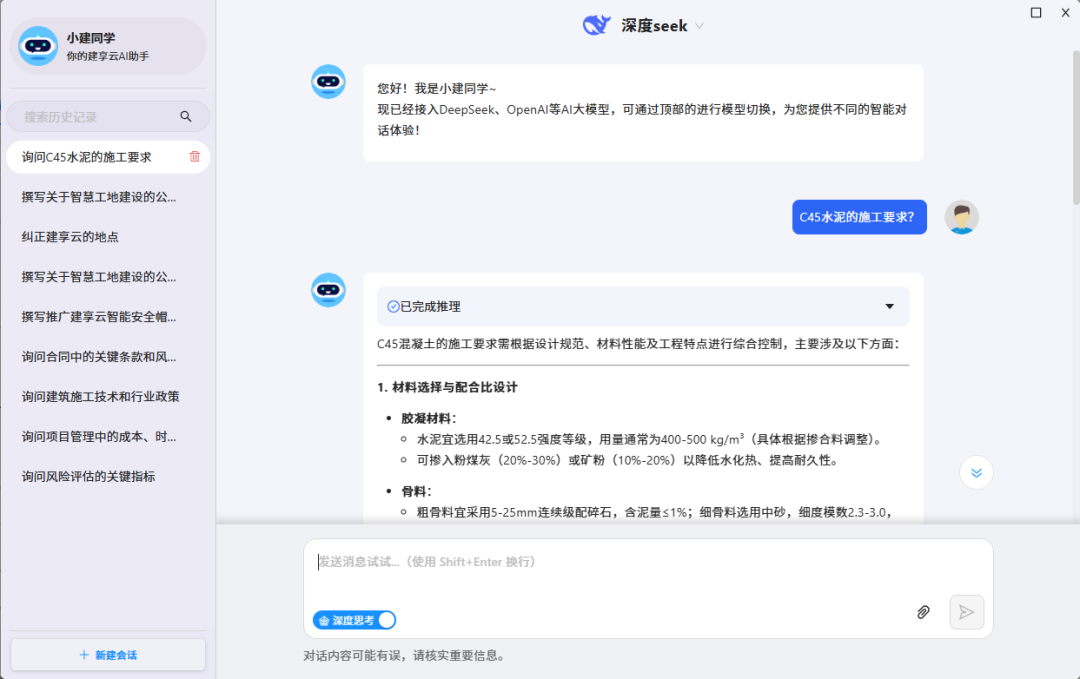 小建同学:智能聊天机器人提供实时、智能、多端口的AI文字聊天和语音应答交互服务,为建筑施工管理人员和工程师提供便捷的信息查询和解决方案。
