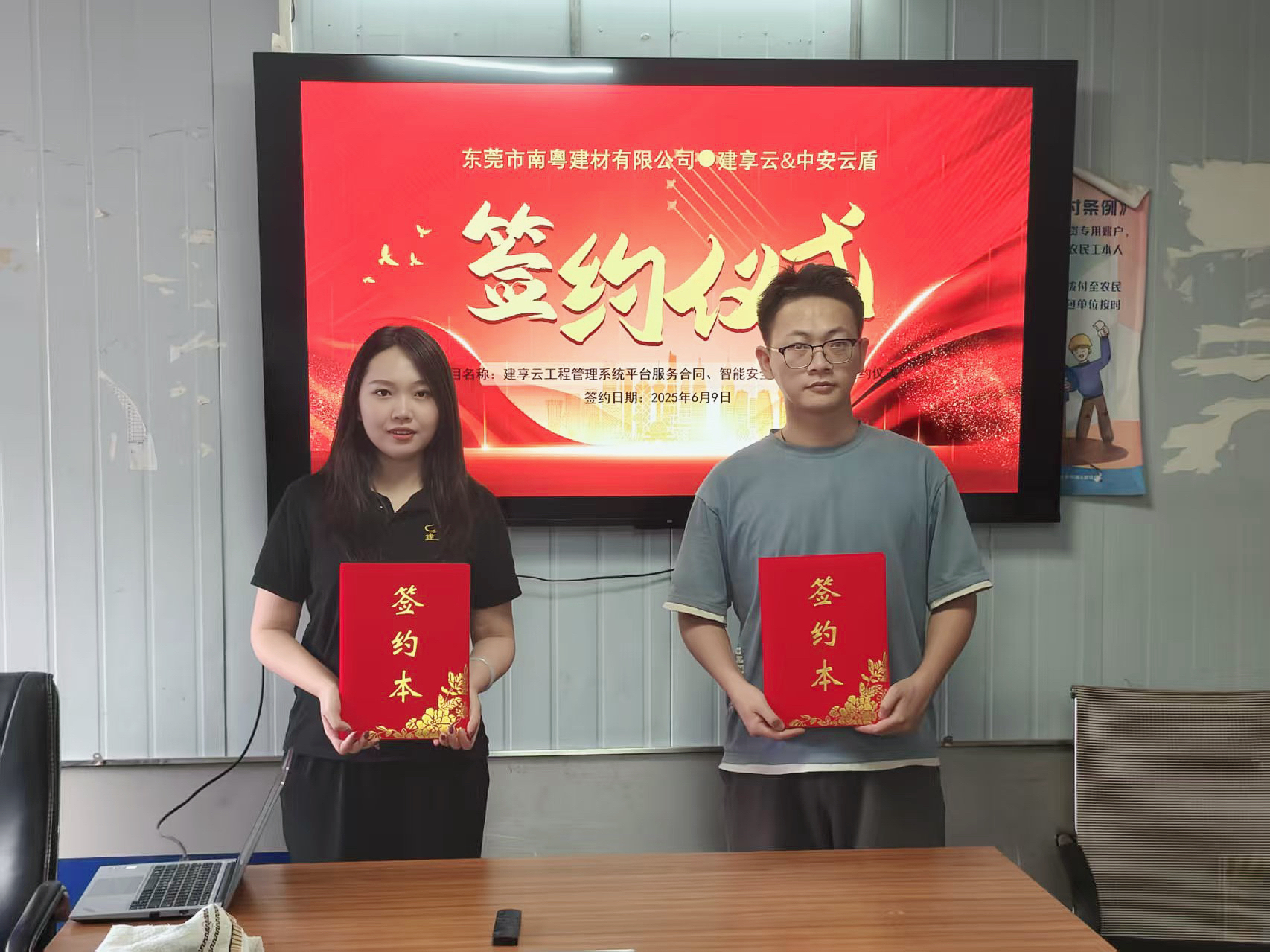 2025年6月9日,建享云迎来里程碑式突破!建享云信息科技(东莞)有限公司与东莞市南粤建材有限公司正式签署平台服务合同、智能安全帽购销合同。此次合作,是建享云首次与建筑行业材料供应实体企业深度携手,标志着建享云成功打通了建筑行业上、中、下游全链路环节,构建起更完整的智慧建造生态链。此次合作不仅为南粤建材注入数字化新动能,更开创了建材企业与工程管理系统深度协同的创新模式。