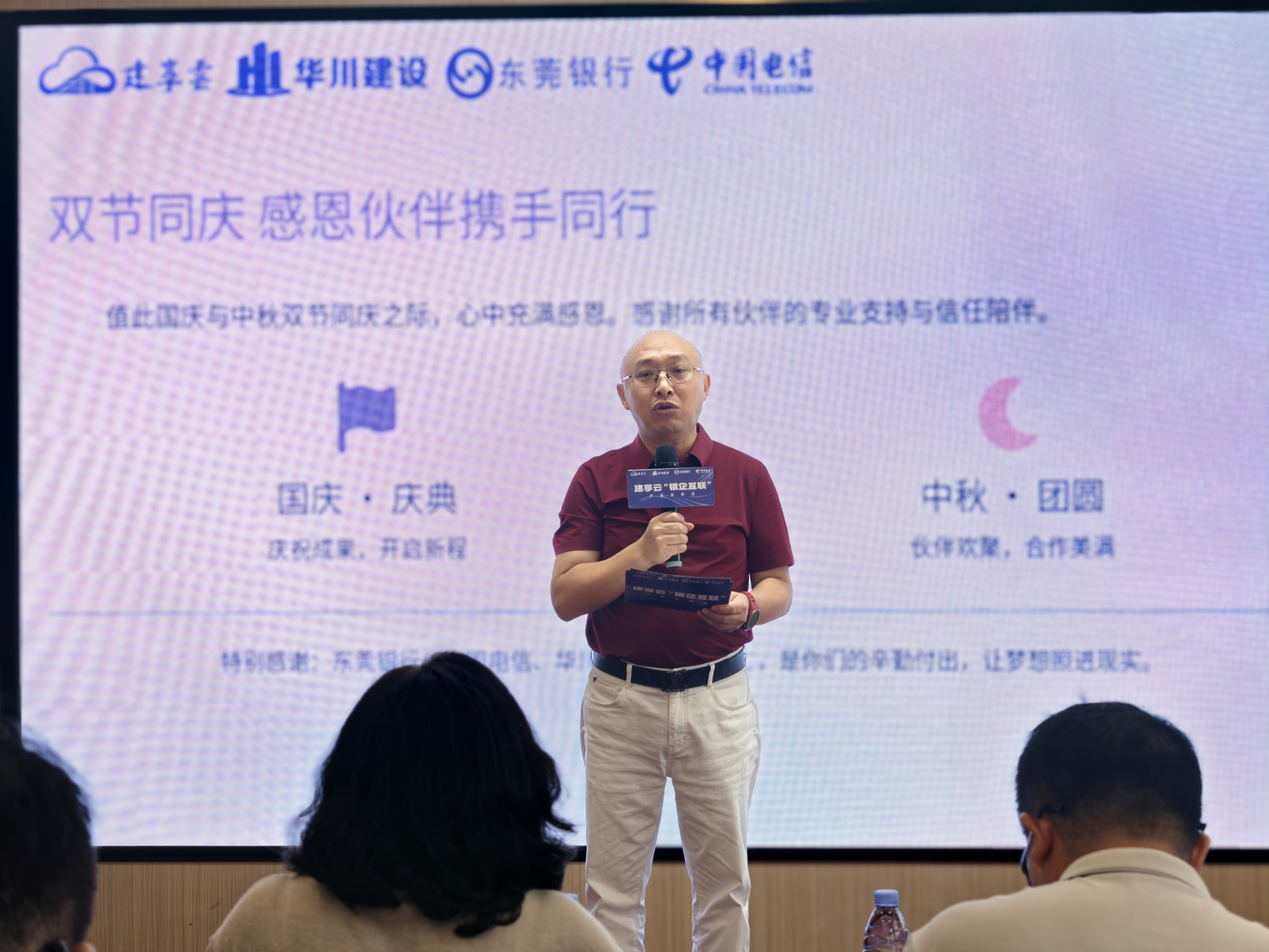 明月照前路,携手启新章!值此国庆与中秋双节同庆之际,魏董向东莞银行、中国电信等合作伙伴,以及全体同仁表达感谢,并期待以此次发布为起点,与行业同仁共同开拓建筑行业数字金融的新篇章。