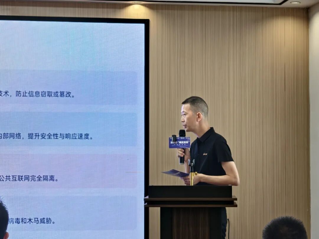 中国电信东莞水乡分公司副总经理张磊磊聚焦 “信息安全”,阐述中国电信为 “银企互联” 提供的坚实支撑。他表示,面对未来海量实时交易与数据并发需求,中国电信打造的 “超算算力+开放平台+专家服务” 三位一体能力,为系统提供弹性、高效的技术保障。