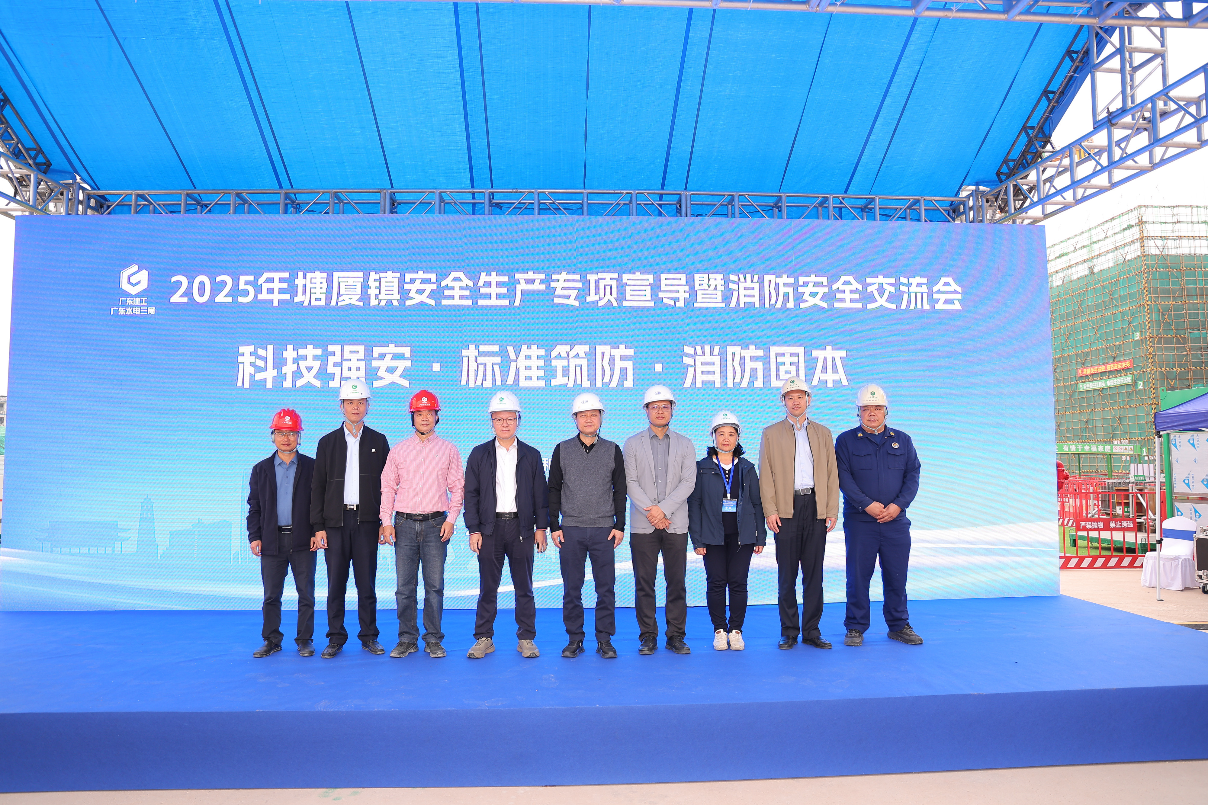 塘厦镇党委委员钟庆生,住建局党总支书记、局长刘裕兴,东莞市建筑业协会秘书长谢芳,水电三局党委委员、副总经理黄毅义,建筑工程公司班子成员和镇相关部门、各社区代表,以及辖区内在建项目负责人、安全员等近300人到场观摩交流。