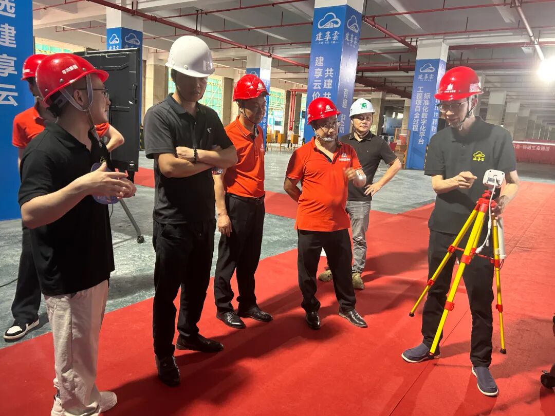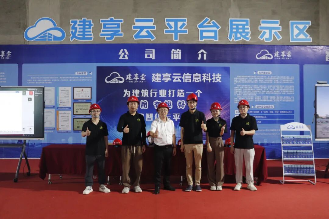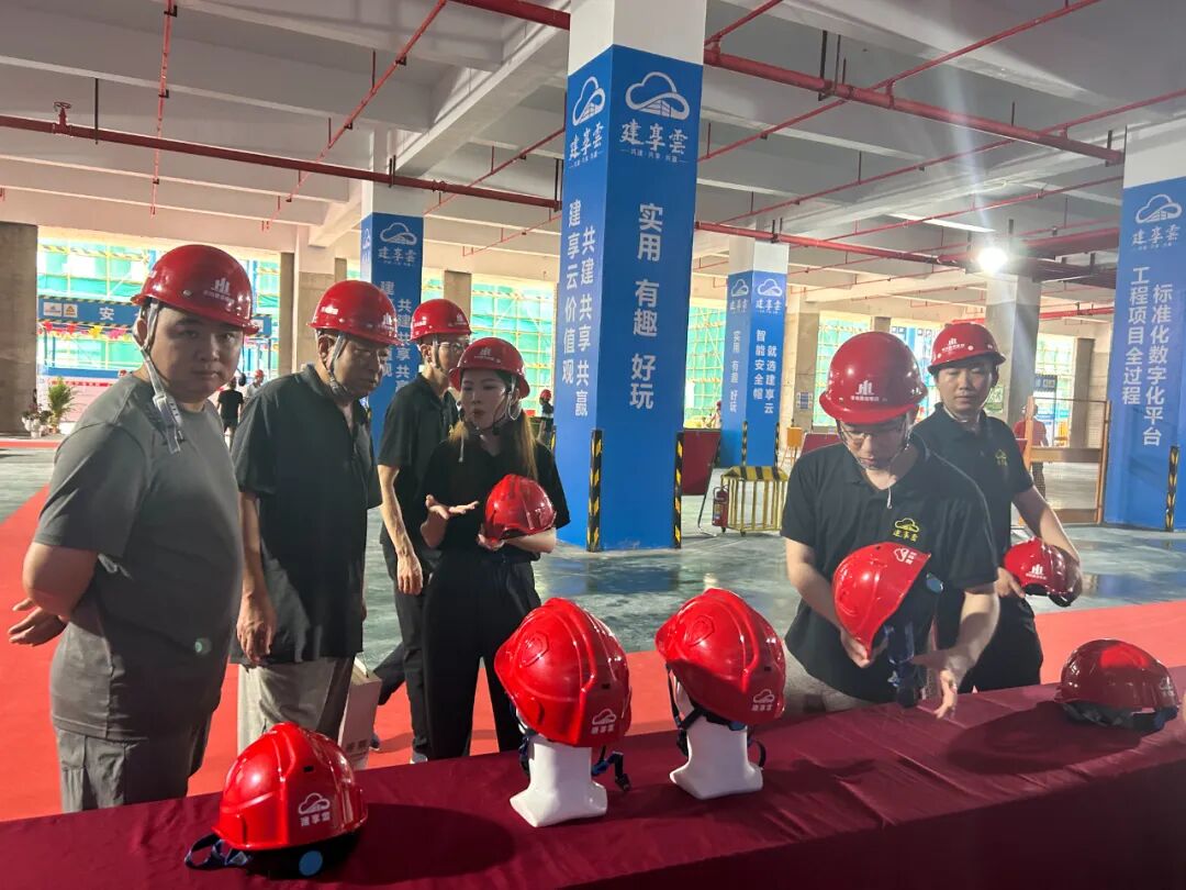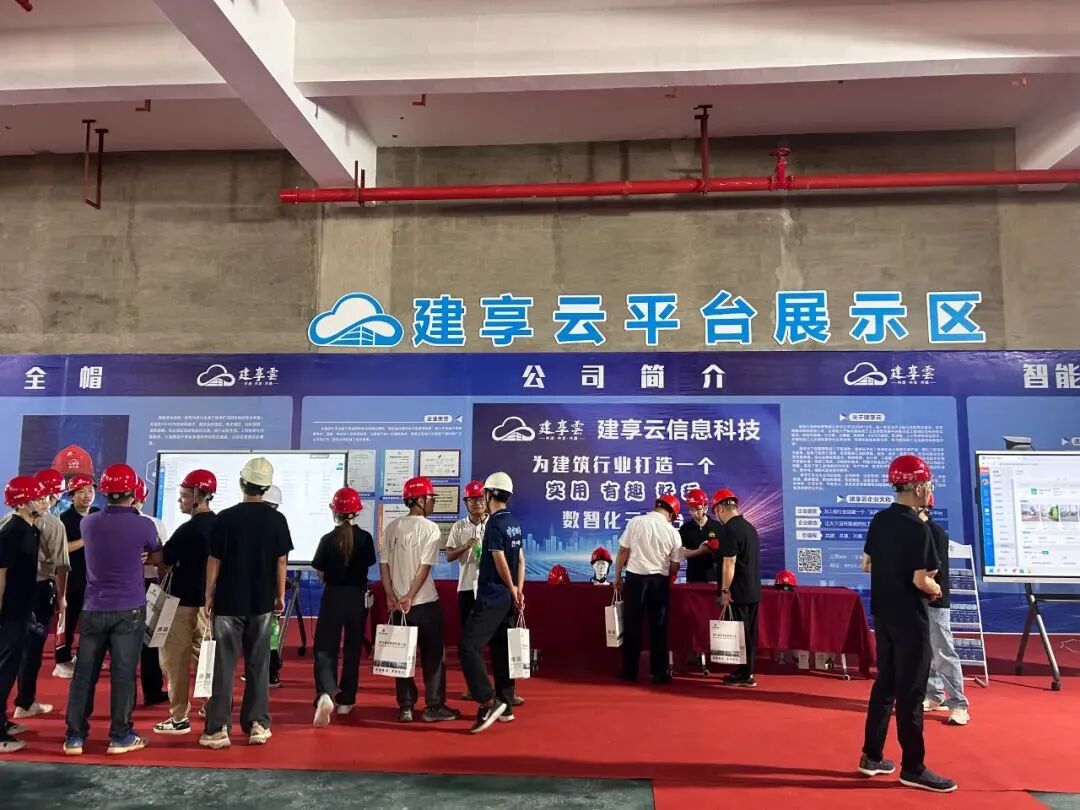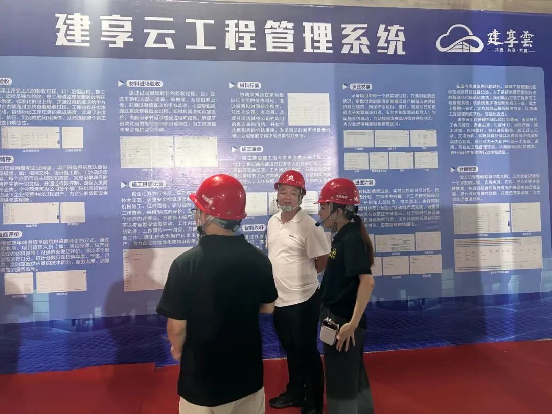 观摩现场,展示了建享云工程管理系统高效管理、智能安全帽的实时防护、智能抓拍收料的精准验收、项目物资管理的精细化管理,和AI智能聊天机器人的即时支持等多项前沿技术。