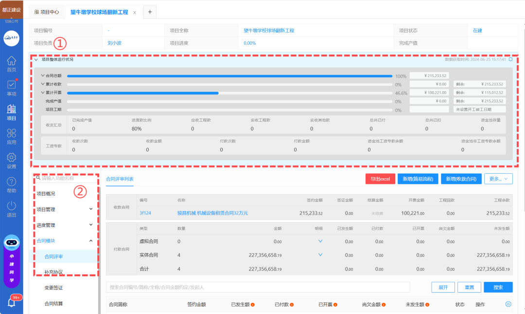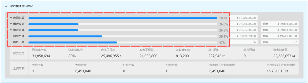 1、【项目整体运行状况】可单独进行权限控制显示(收款明细受到收款功能权限控制)