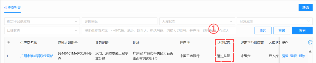 1、供应商列表新增“认证状态”字段