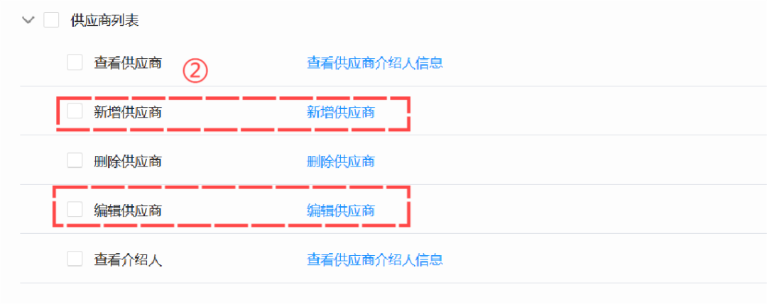 2、供应商列表将原新增权限,拆分为新增、编辑权限