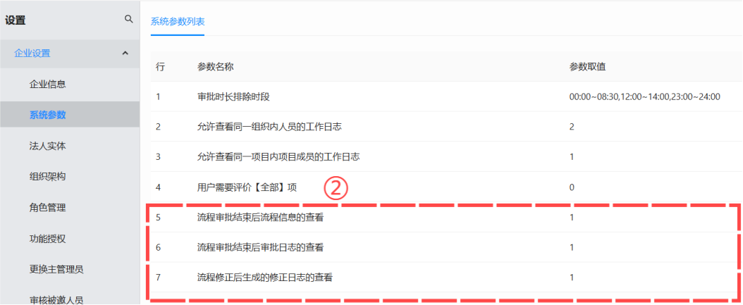 2、【设置-系统参数】新增“流程日志信息”控制