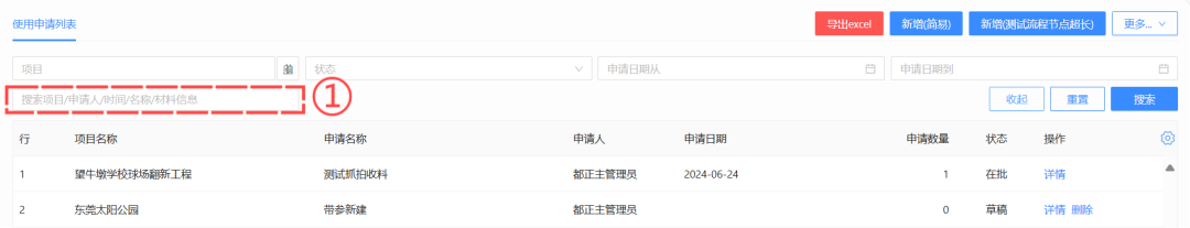 2、可在项目详情页内查看对应功能的数据,数据会根据项目自动过滤