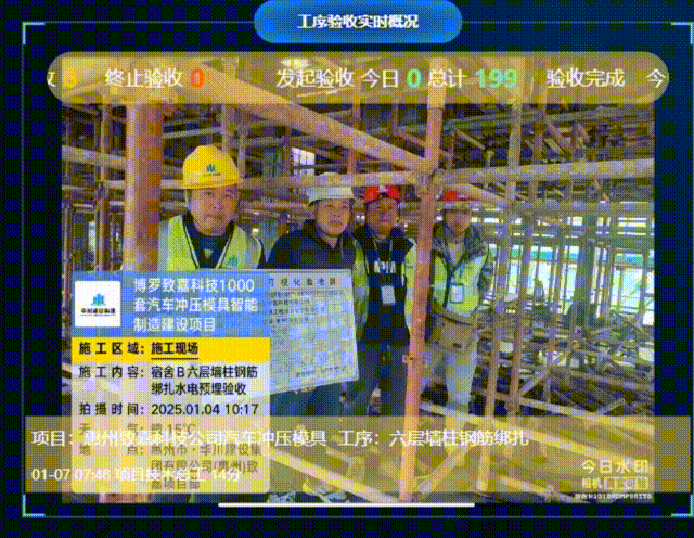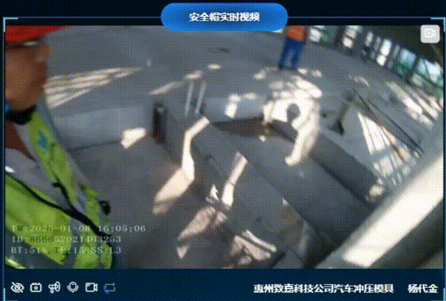 工人佩戴智能安全帽,实时传输工序验收视频和现场管理情况。