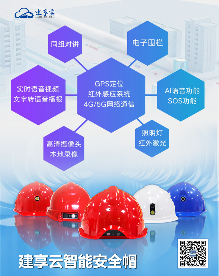 智能安全帽:集成实时定位、环境监测、SOS救援等功能,响应广东省住建厅“一网统管”建设专题,实现工地安全数据动态归集,助力安全事故率下降;
