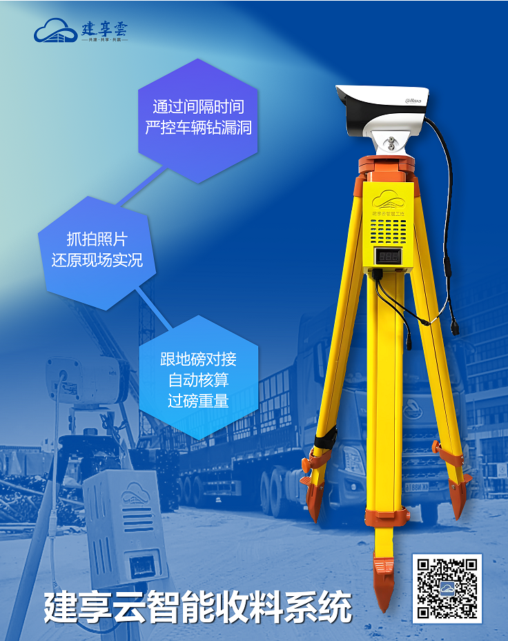 智能收料系统:通过AI点数相机、物联网称重技术,精准管控混凝土、钢筋等材料验收,自动核算过磅重量,数据直联建享云平台。