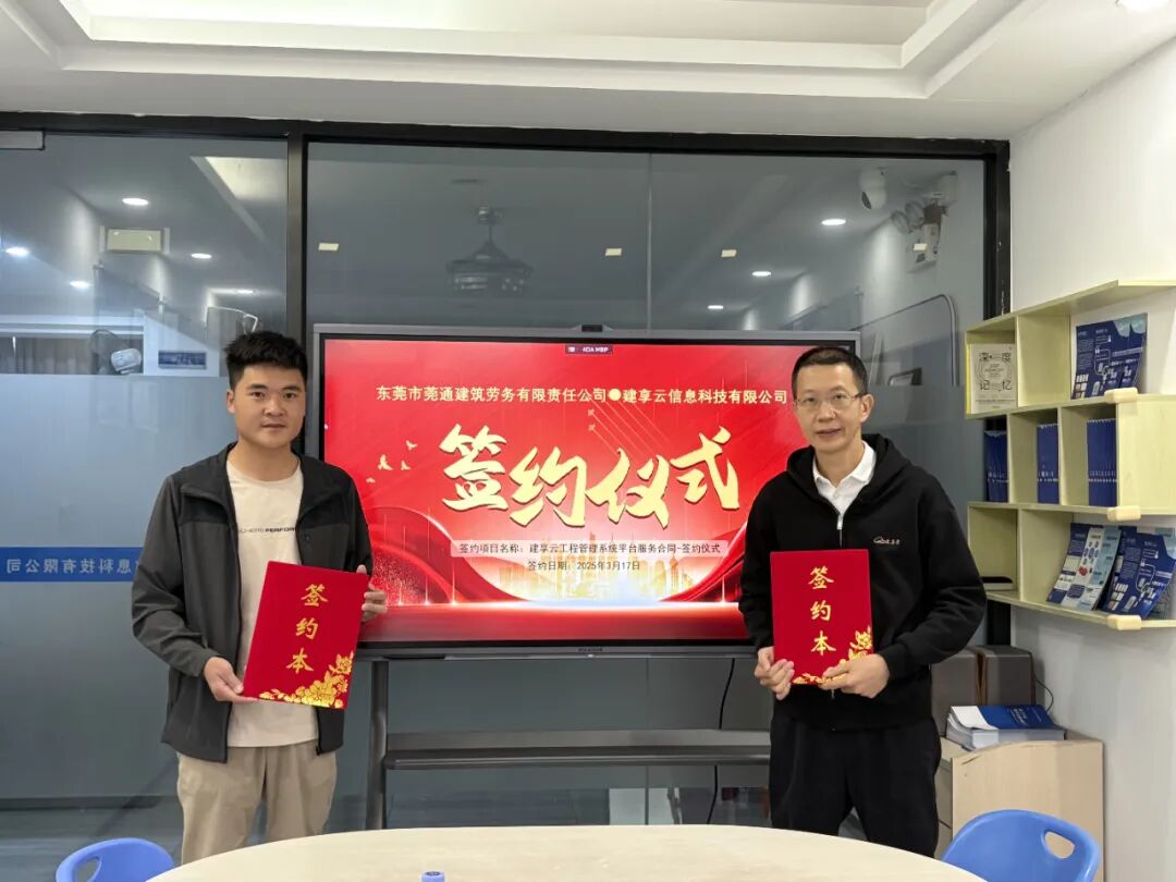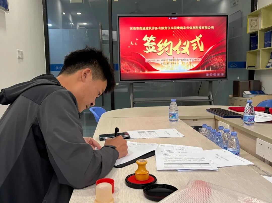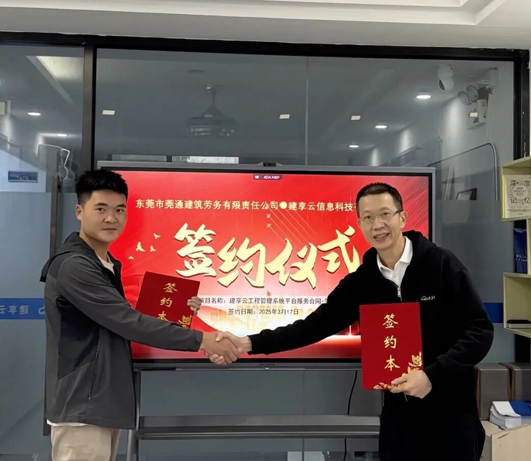 2025年3月18日,东莞市莞通建筑劳务有限责任公司与建享云信息科技(东莞)有限公司正式签署了平台服务合同,这标志着双方在建筑劳务数字化转型的道路上迈出了重要的一步。