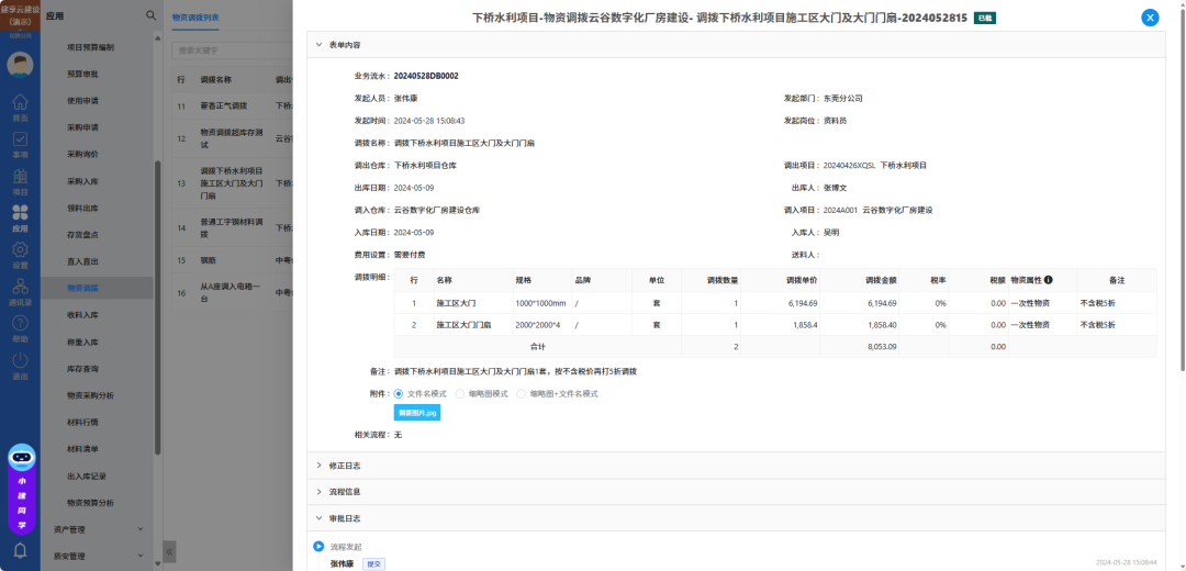 ——建享云物资管理系统 物资调拨