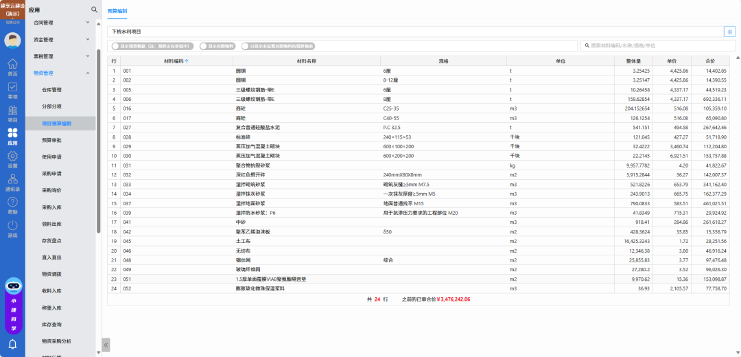 ——物资管理系统 项目预算编制
