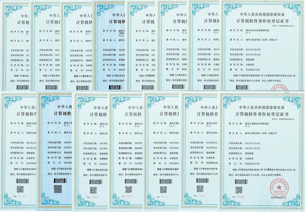 资质权威:建享云荣获高新技术企业、科技型中小企业、东莞市软件行业协会会员等证书;2项发明专利2项体系认证证书15+计算机软件著作权;使用本范例技术产品(建享云工程管理系统)的工程项目优先支持省市各项评优评奖;