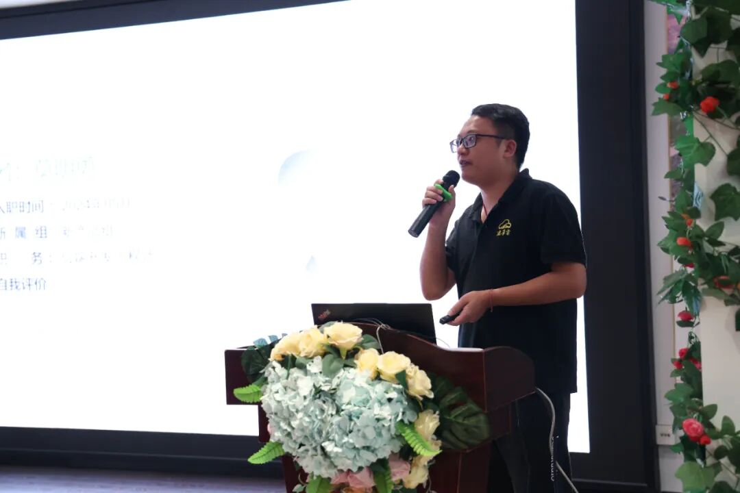 在全场的期待中,新晋任职的同事依次上台述职,分享对新岗位的述职与规划,首先上台的是高级后端开发工程师莫明勇,他对自己的岗位任职业绩做了详细的陈述,朴实的话语里藏着坚定的初心,清晰的规划中展现着担当的决心。