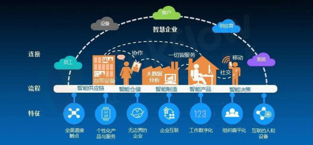 简单来说,就是把企业的过程和数据进行数字化,即:运用IT技术、互联网、云存储和AI技术来帮助企业实现高效率运营。