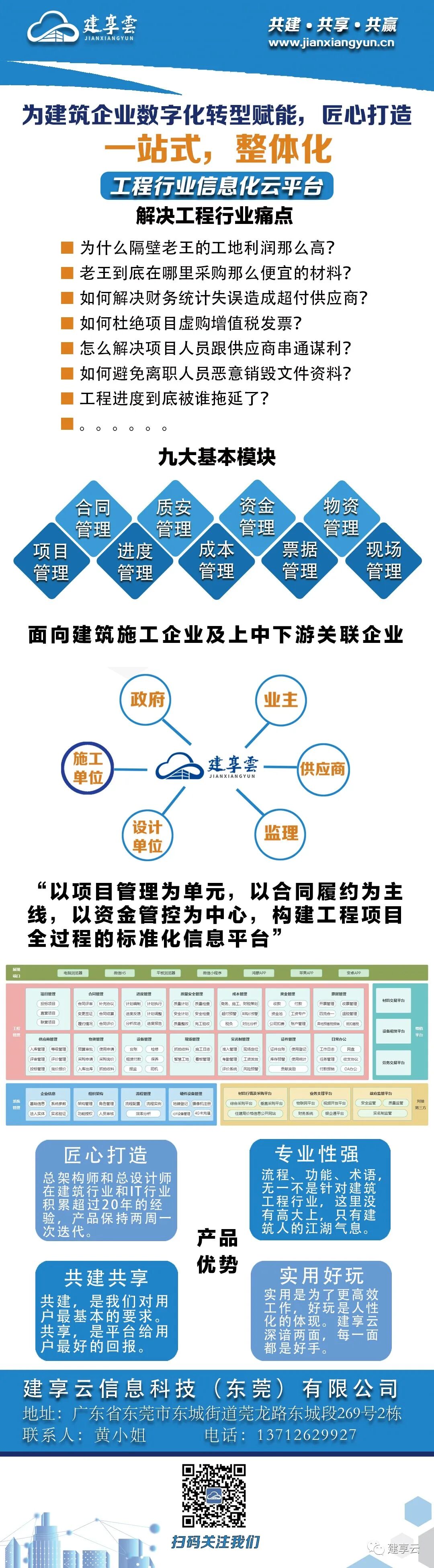 建享云为建筑企业数字化转型赋能,匠心打造一站式、整体化工程行业信息化云平台,解决工程行业痛点